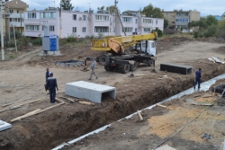 На улице заканчивается монтаж теплотрассы и ведутся работы по благоустройству – рядом с ФОКом будут обустроены пешеходные дорожки, тротуары, подъездная и объездная дороги, парковки…