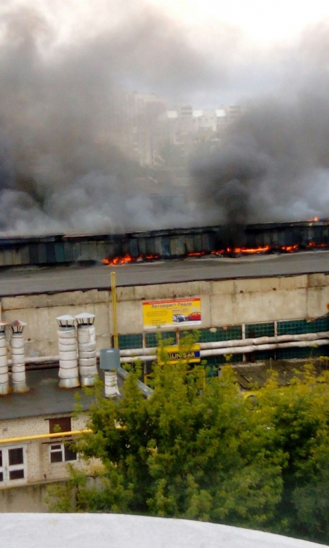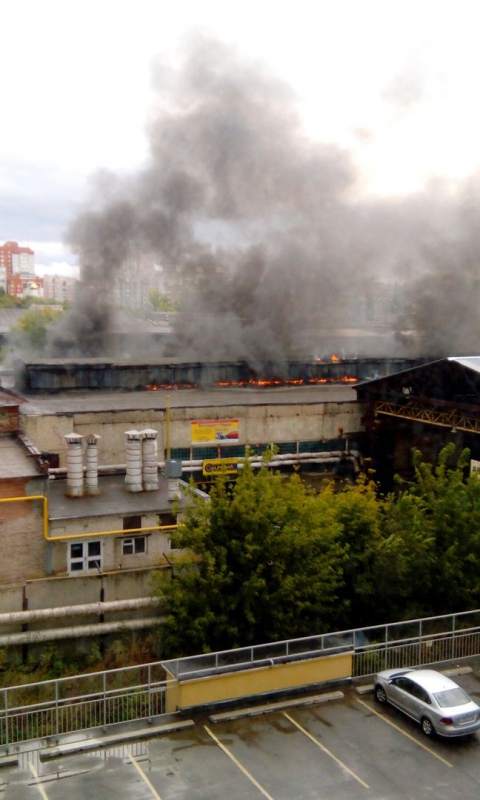 Судя по фотографиям в небо стелется черный дым, горит один из корпусов завода. На месте трудятся несколько пожарных расчетов.