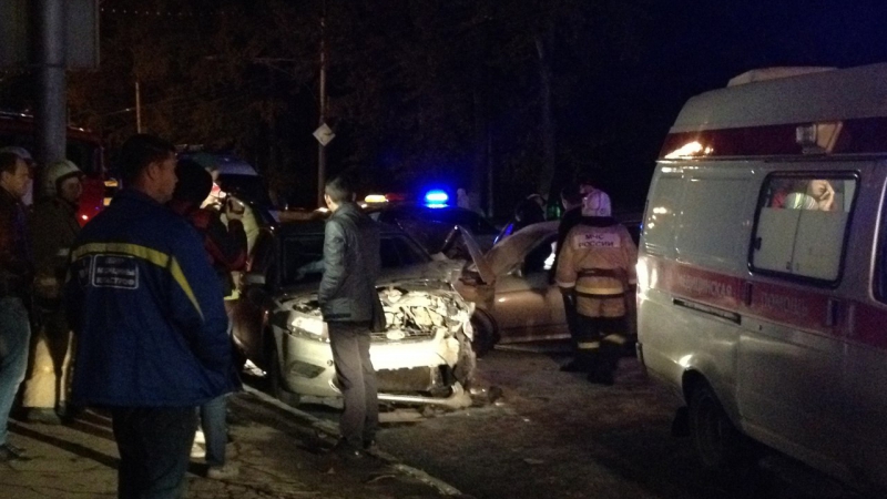 По предварительным данным городского отдела ГИБДД, около 21.55 напротив дома №9 по проспекту 50 лет Октября автомобиль «ВАЗ-2111» врезался в «Форд Фокус», а потом с иномаркой столкнулся «Ниссан Кашкай». Предположительно, причиной ДТП стало то, что 28-летний водитель отечественной легковушки не справился с управлением и выехал на полосу встречного движения.