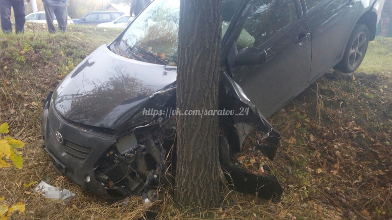 Сегодня в Ленинском районе Саратова автомобиль «Тойота Королла» врезался в дерево. Это произошло неподалеку от моста на улице Буровой в поселке Елшанка.