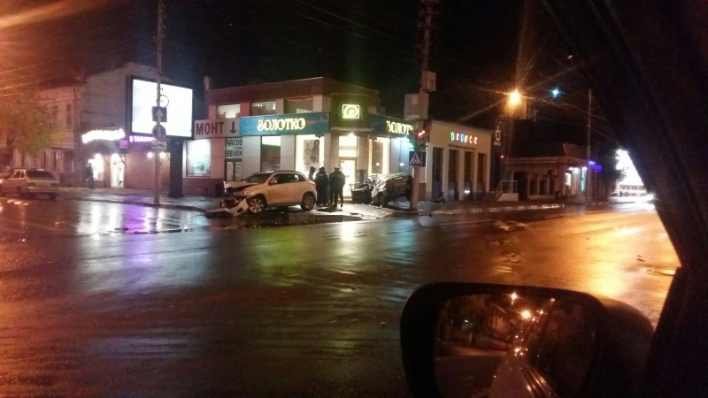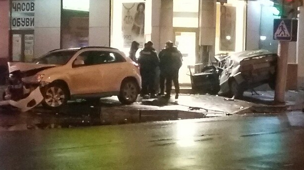 По предварительной информации городского отдела ГИБДД, 23-летний водитель «Мицубиси» ехал по улице Чапаева в сторону Московской на запрещающий сигнал светофора. На пересечении с Большой Казачьей иномарка столкнулась с автомашиной «ВАЗ-2114» под управлением 23-летнего парня. От удара отечественная легковушка протаранила столб, а также стену ювелирного магазина.