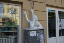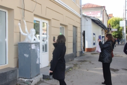 Напомним, эта скульптура из скотча, напоминающая человеческий бюст с четырьмя руками, была размещена на трансформаторной будке рядом с домом №186 по улице Чернышевского (пересечение с Московской). Под ним скотчем же была приклеена надпись с названием и фамилией автора. Фигура облокачивалась на левую руку, правой подпирала щеку, еще две тянулись вверх из спины. Прохожие фотографировали арт-объект, делали с ним селфи.