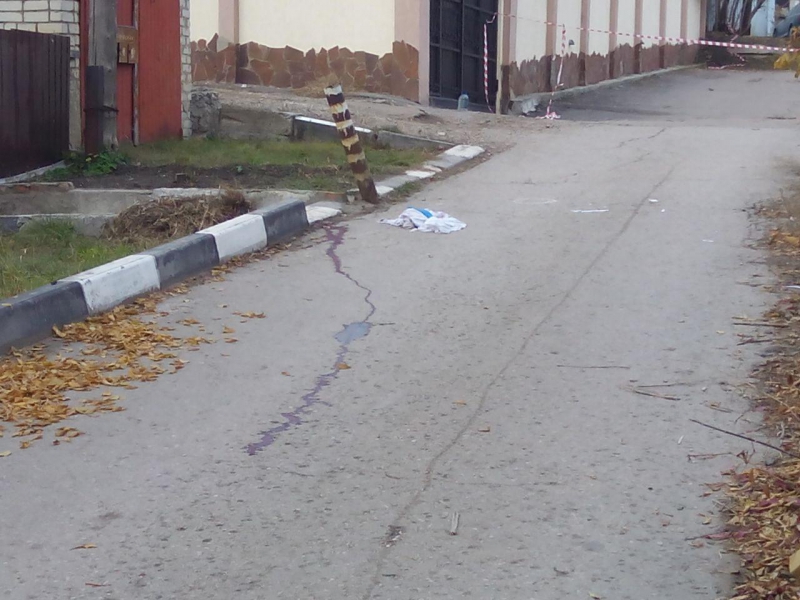 Рядом с особняком предпринимателя, где его убили, на земле лужа крови и валяется ткань, которой, очевидно, пытались остановить кровотечение.