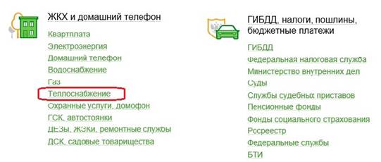 2. В открывшейся вкладке в разделе «ЖКХ и домашний телефон» отметить «Теплоснабжение»