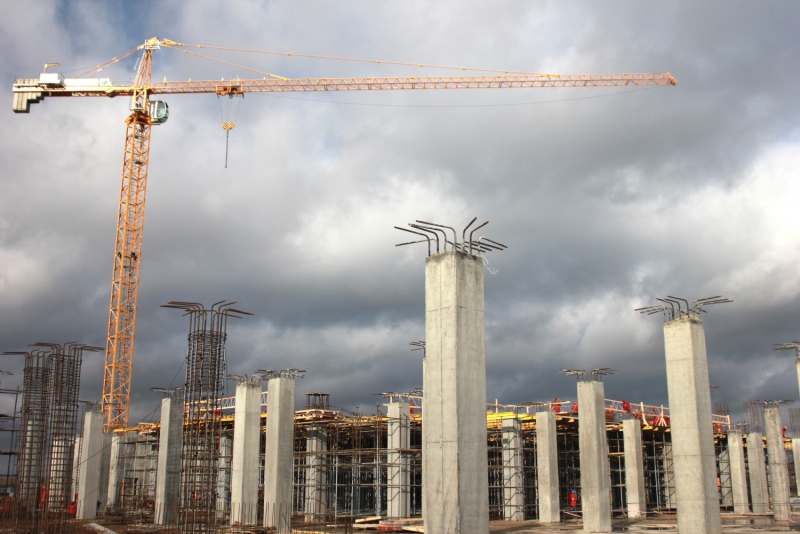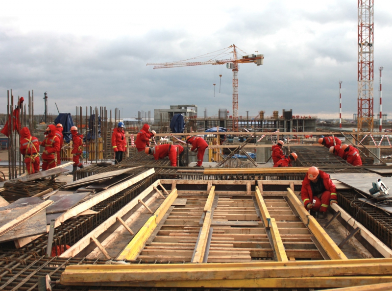 Кроме того, завершается заливка бетоном монолитных каркасов трех административно-производственных зданий, предназначенных для размещения работников служб аэропорта.