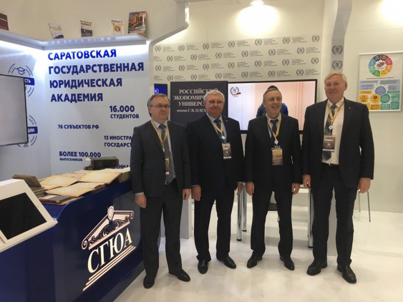 Также в этот день состоялось открытие масштабной выставки, на которой были представлены художественные коллекции, ценнейшие экспонаты из различных музеев Южного Урала, промышленные разработки, площадки научных и образовательных учреждений России. Председатель Совета ректоров вузов Саратовской области Сергей Суровов представил Саратов как один из ведущих центров российского образования и студенчества, а также презентовал площадку Саратовской государственной юридической академии, где гости и участники выставки смогли познакомиться с историей, инновациями, научно-исследовательскими и творческими достижениями одного из старейших юридических вузов страны.