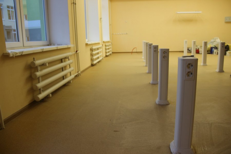 На объекте ведется устройство наружных систем: водоснабжение и теплоснабжение готовы полностью, на 90% выполнено водоотведение. Сейчас монтируются электроснабжение (готовность 90%), водоснабжение (85%), водоотведение (85%) и теплоснабжение (100%).