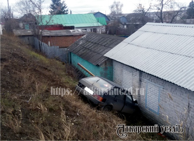 Сегодня в Аткарске молодой водитель на «ВАЗе» врезался в жилой дом. По предварительной версии, шофер «ВАЗ-2109» не выбрал безопасную скорость движения и не справился с управлением. «Девятка» пробила металлическое ограждение на мосту, съехала в овраг и врезалась в стену жилого дома.