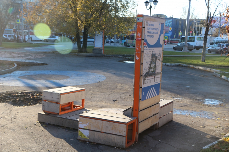 С Привокзальной площади Саратова убрали скамейки и тумбы с цветами, установленные там в рамках тестового благоустройства территории КБ «Стрелка».