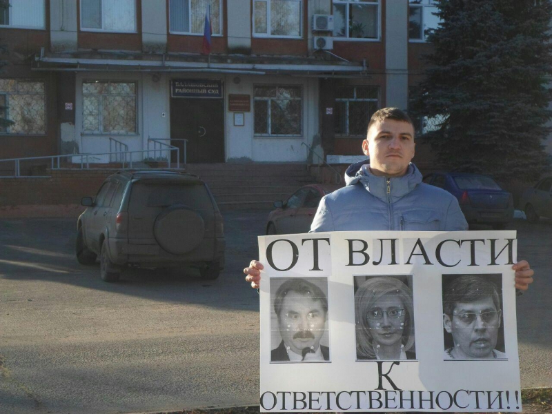 Общественники устроили пикет у здания суда, принесли бывшей главе района сухари.