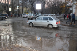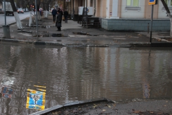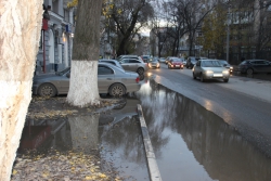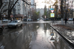 Корреспондент «Четвертой Власти» обнаружил на месте, что там образовалась огромная лужа глубиной около 10 сантиметров. Ее длина составляет около 10 метров, ширина – около 8 метров. От этого перекрестка лужа растекается по Большой Казачьей на протяжении 25 метров в сторону улицы Рахова.