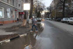 В центре Саратова вода регулярно затапливает перекресток без ливневки