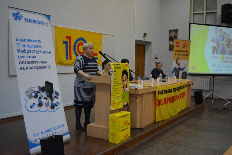 В Саратовском социально-экономическом институте РЭУ им. Г.В. Плеханова состоялся Всероссийский «День 1С: Карьеры» для студентов и выпускников вуза. Ставшее традиционным социально значимое мероприятие проводится региональным дистрибьютором фирмы «1С» компанией «Техносерв-Саратов» совместно с партнерами фирмы «1С» и при поддержке Эконома.