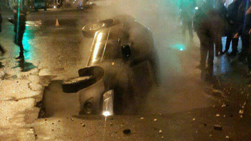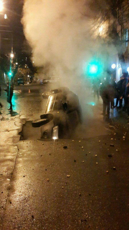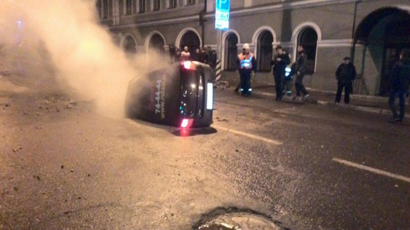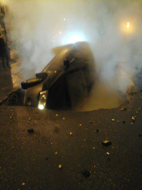 На опубликованных фото видно, что транспорт лежит на левом боку, наполовину уйдя под землю. Из ямы при этом поднимается пар и хлещут фонтаны воды. Корреспонденту «Четвертой Власти» рассказали, что машину еще не достали, место происшествия перекрыто для автомобилистов. На месте работают спасатели и коммунальщики.