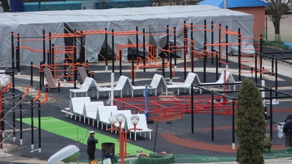 Большой уличный спортивный комплекс расположен напротив ФОКа «Звездный». Заниматься на нем сможет любой желающий. Устанавливать его начали около 2-х недель назад. Сейчас все основные работы завершены, остается лишь доделать прорезиненное покрытие.