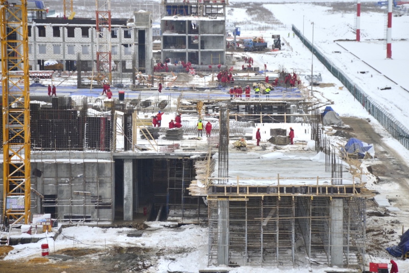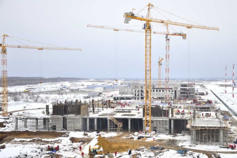 К строительству терминала, других зданий и сооружений инвестиционной части проекта привлечено 580 строителей и 45 единиц техники, включая четыре башенных крана, уточняет компания.
