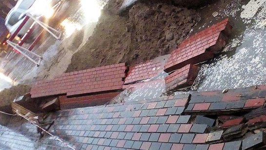 Однако 11 или 12 ноября произошел инцидент, связанный с этой ямой: кирпичная кладка и часть тротуара сползли в раскоп на дороге.