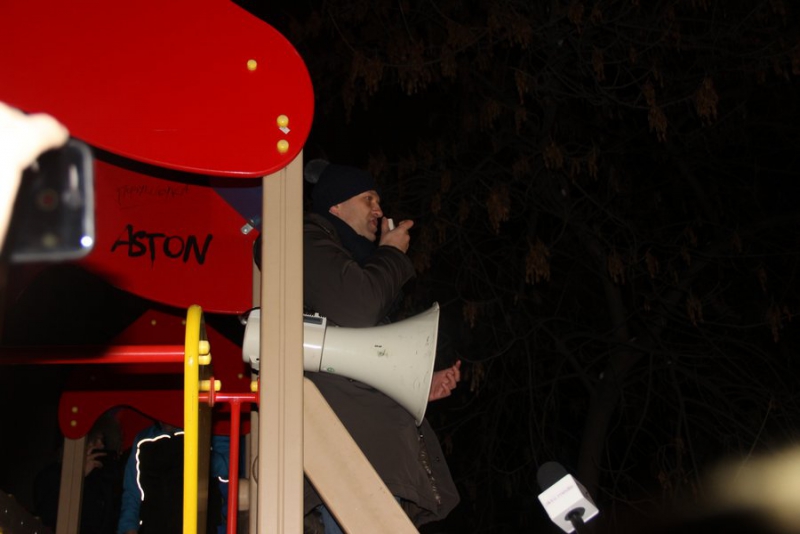 Когда на место прибыл Алексей Навальный, он сначала предложил подняться на уже установленную «братством» сцену. Однако по пути его встретил руководитель организации Сергей Авезниязов и объяснил, что ему туда нельзя. Тогда оппозиционер пошел со сторонниками в другую часть сквера. В настоящее время он «вещает» через мегафон с детской площадки, забравшись на горку. Число участников акции постепенно возрастает.