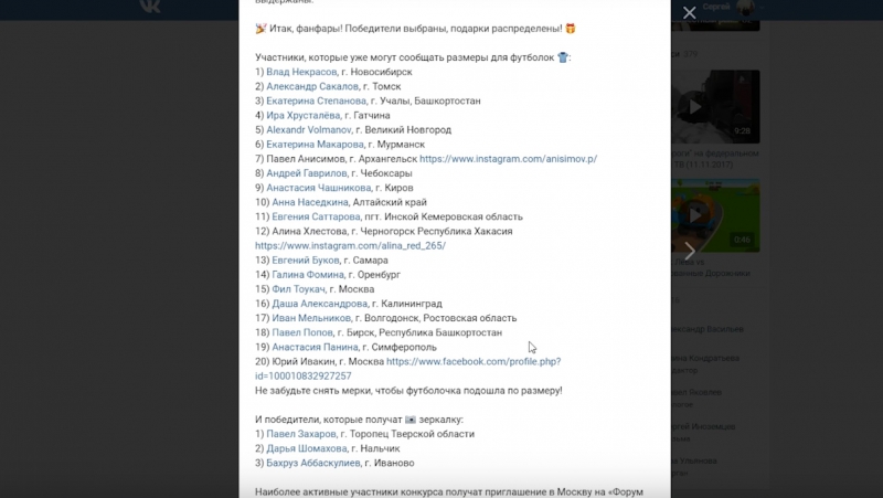 Когда он продолжил обосновывать свои претензии, «буквально через пару минут» организаторы вообще убрали Сергея Синицына из списка победителей (то есть, отобрали приз в виде поездки на форум ОНФ). Этот факт зафиксировали как сам блогер, так и другие пользователи, которые сделали скриншоты.