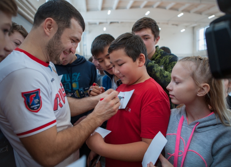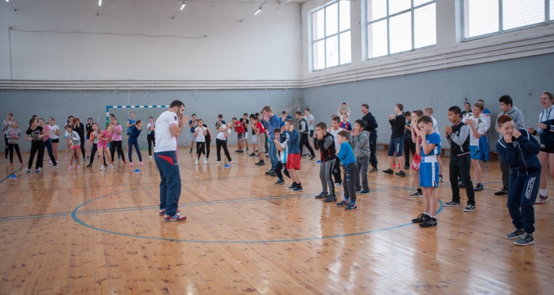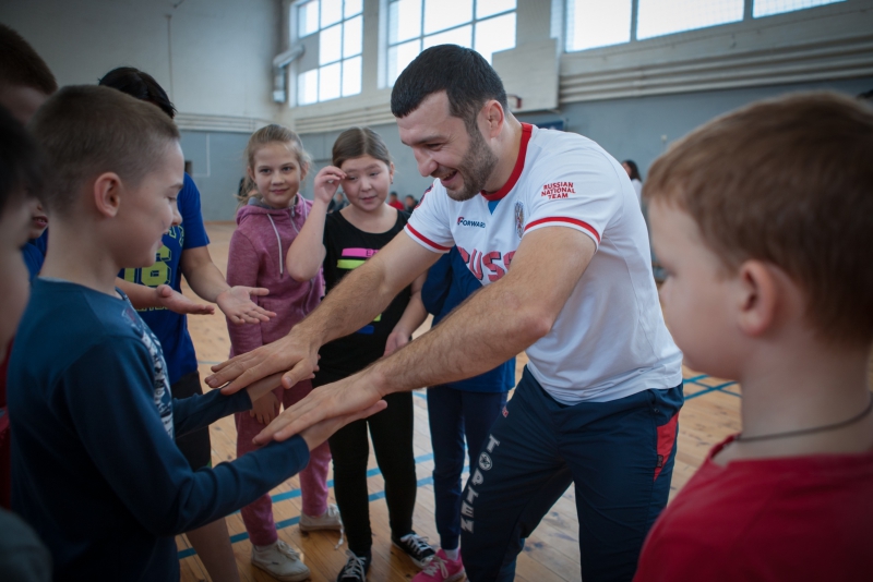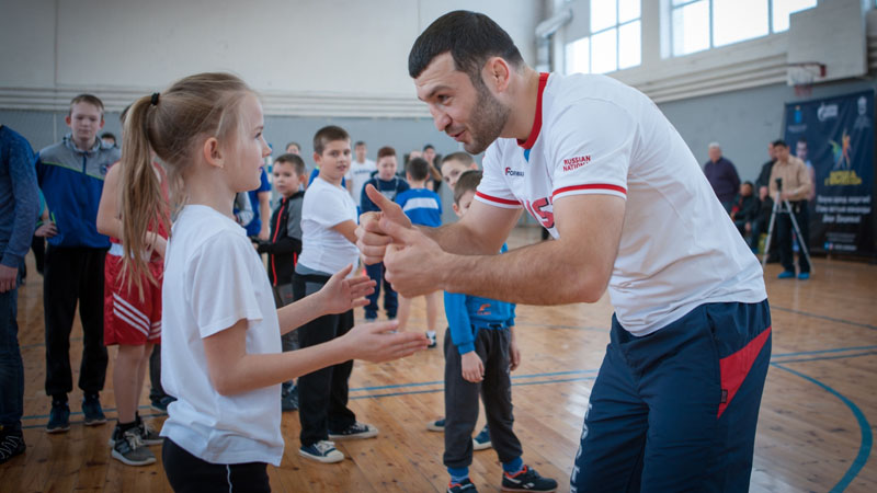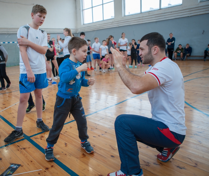 В завершении спортивного утра Даци Дациев пригласил ребят принять участие в эстафете, победители которой получили в подарок памятные футболки. Каждый желающий смог лично пообщаться со спортсменом и задать все интересующие вопросы.