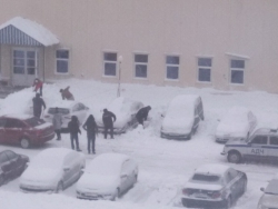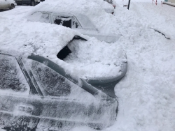 В Балакове лавины снега обрушились на припаркованные автомобили
