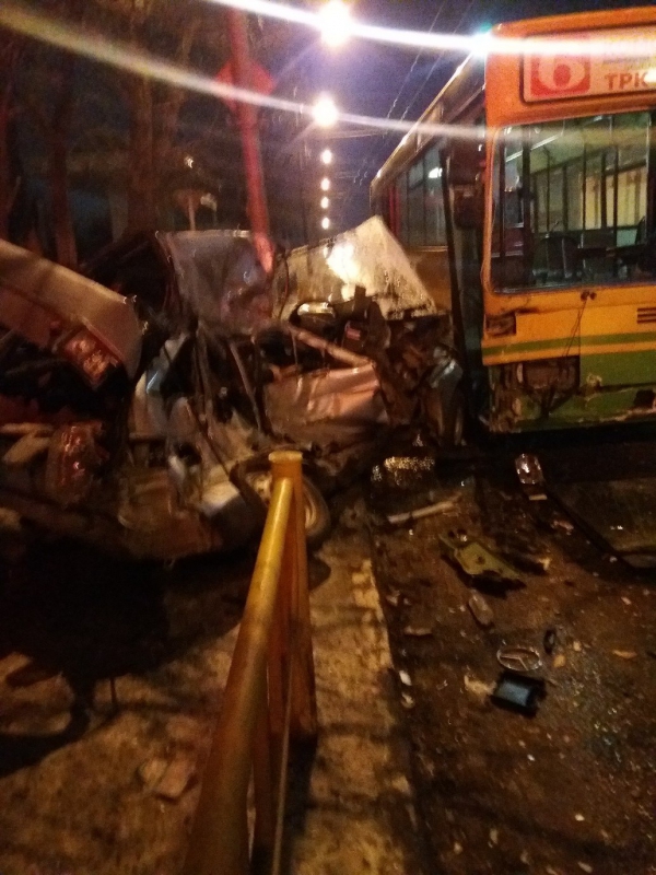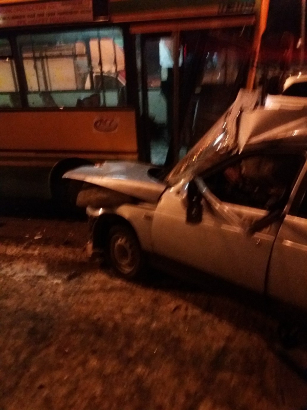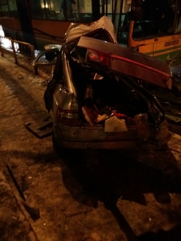 По предварительным сведениям, по проспекту 50 лет Октября ехал автобус маршрута №6, и в районе Стрелки (пересечение с Тракторной) в него на высокой скорости врезался автомобиль «ВАЗ-2112». От удара легковушка буквально превратилась в груду металла.