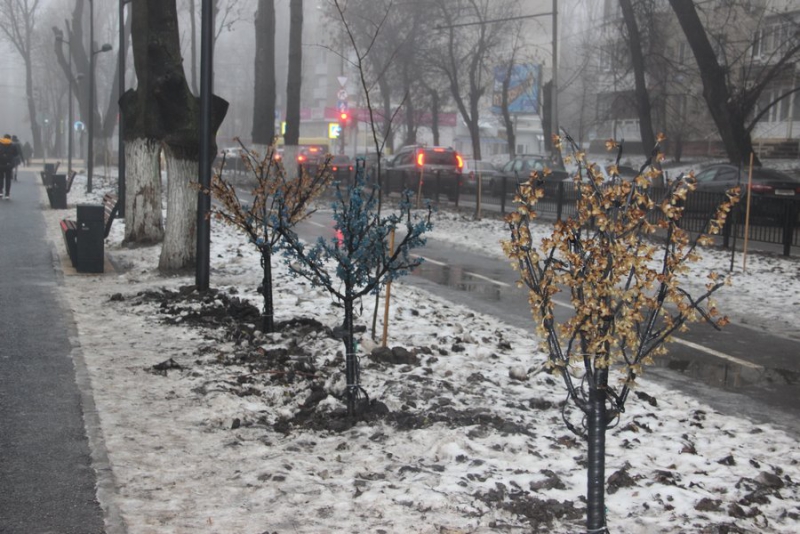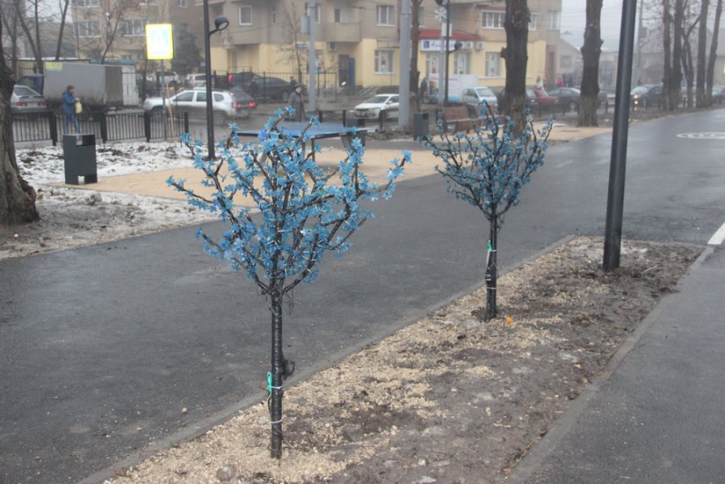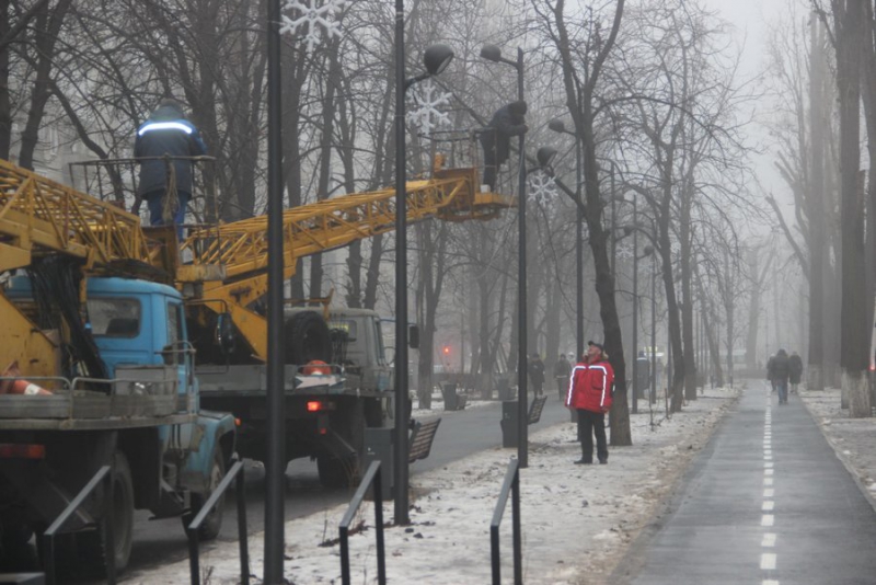 В эти минуты рабочие продолжают украшать к Новому году бульвар на улице Рахова. Об этом сообщает корреспондент «Четвертой Власти» с места.