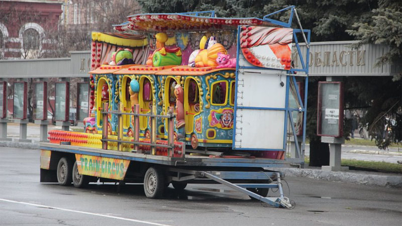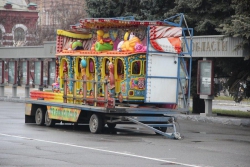 В настоящее время там стоит несколько фур с аттракционами. Среди них замечены детский сказочный паровозик, «Лебеди». Из перечня на передвижной кассе можно сделать вывод, что здесь еще установят автодром, детскую цепочную карусель, несколько батутов и центрифугу.