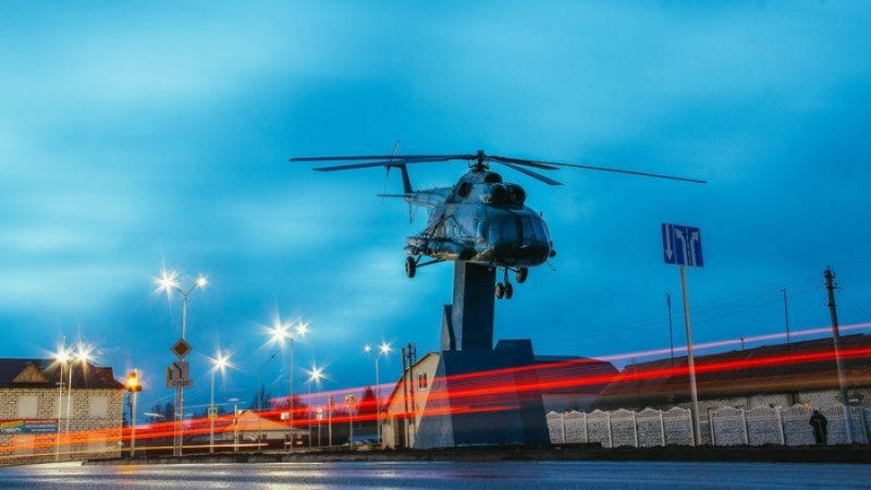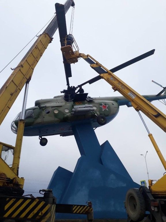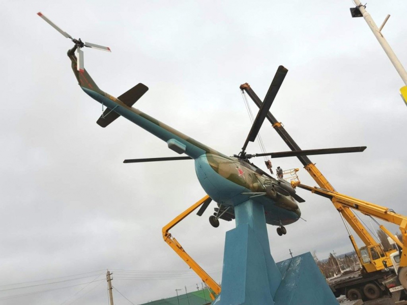 В Татищеве закончен монтаж вертолета в новом сквере