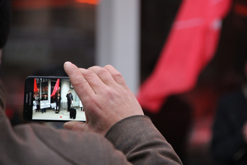 За демонстрацией наблюдали двое полицейских, которые фиксировали происходящее на телефон. Около 10 горожан разных возрастов с интересом наблюдали за митингом, другие же проходили мимо, закрывая уши и сетуя, что из-за скопления людей невозможно пройти к остановке и все «слишком громко».