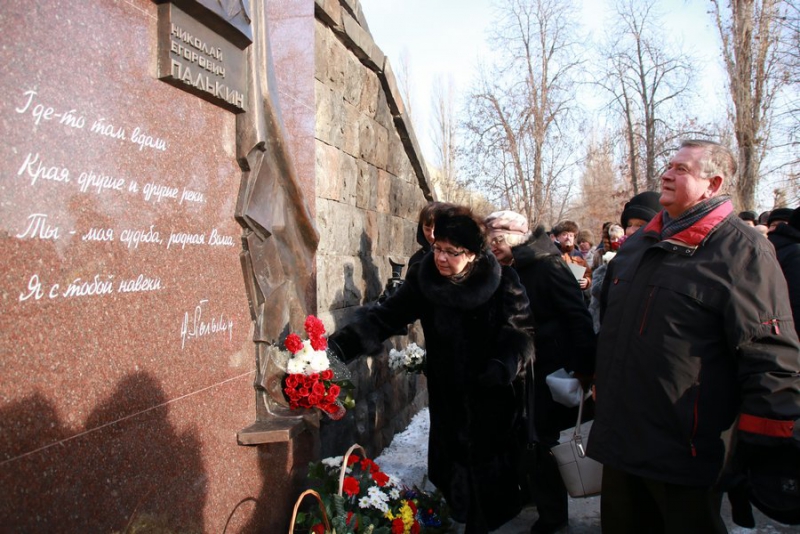 Около 100 человек собрались на церемонии на третьем ярусе Набережной Космонавтов в районе спуска между домами № 1 и № 2. Среди них близкие родственники, представители культурного и архитектурного сообщества региона, областной думы, заместитель председателя правительства Валентина Гречушкина, министр культуры Татьяна Гаранина. Мероприятие началось с песни на стихи Палькина «Моей России соловьи» и напоминания о том, что сегодня в народе отмечается православный праздник «Никола зимний» - в честь святого Николая Чудотворца.