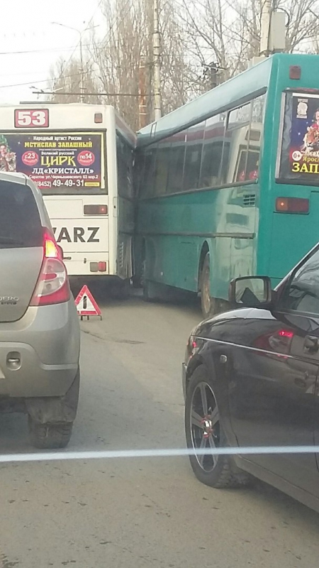 В Саратове столкновение двух автобусов спровоцировало пробки