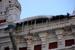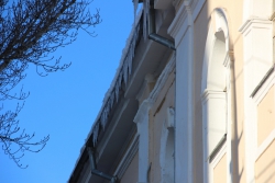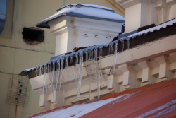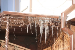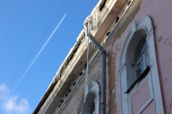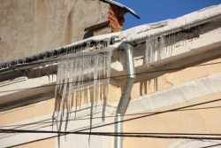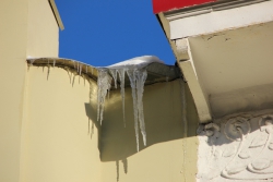 В городе из-за потепления на крышах образовались сосульки и наледь. Например, с крыши двухэтажного особняка на Волжской, 19 свисает россыпь острых сосулек, которые располагаются на большей части крыши дома, а около основания здания огромная наледь. Часто встречается, когда сосульки располагаются над входной дверью в магазин.