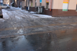 В целом ситуация в городе на второстепенных улицах еще хуже. Здесь гражданам ничего не остается, как пробегать под свисающей наледью или нарушать правила дорожного движения и обходить особо опасные участки по проезжей части. Корреспондент «4В» наблюдал, как с крыш домов на улице Октябрьская сыпался лед, в том числе на людей и припаркованные рядом автомобили.