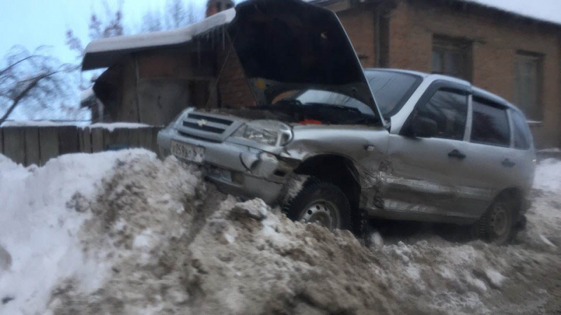 ДТП случилось около двух часов назад на улице Минская. У кинотеатра «Россия» не смогли разъехаться «Нива Шевроле», «Фольксваген» и «Чери». От удара внедорожник отбросило на сугроб.