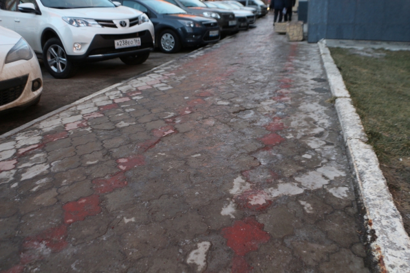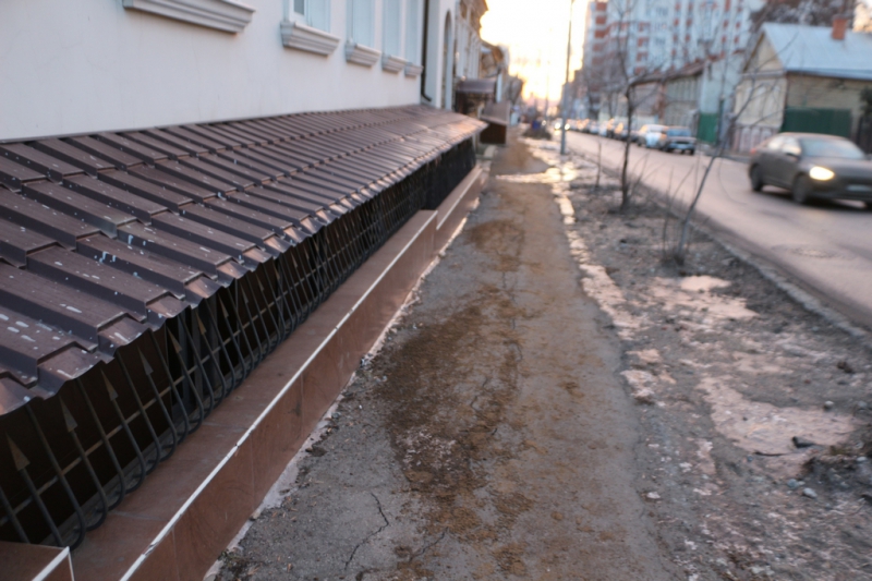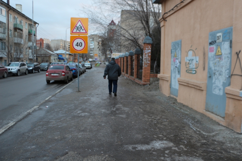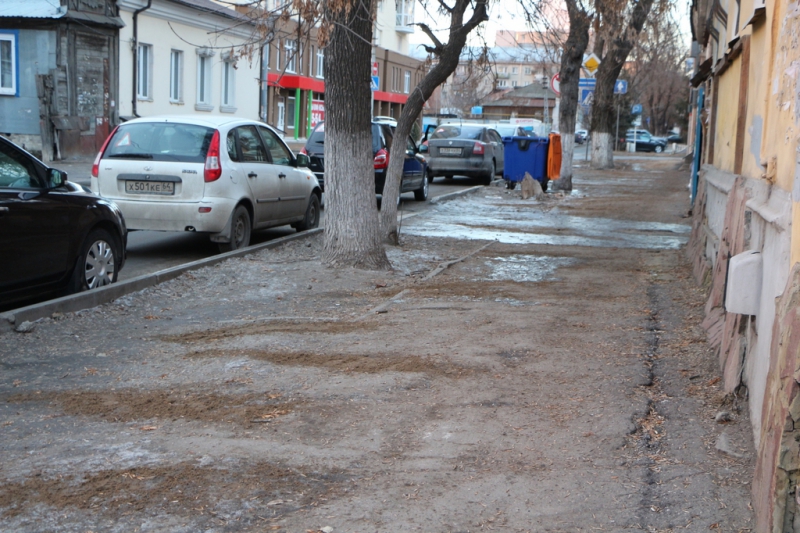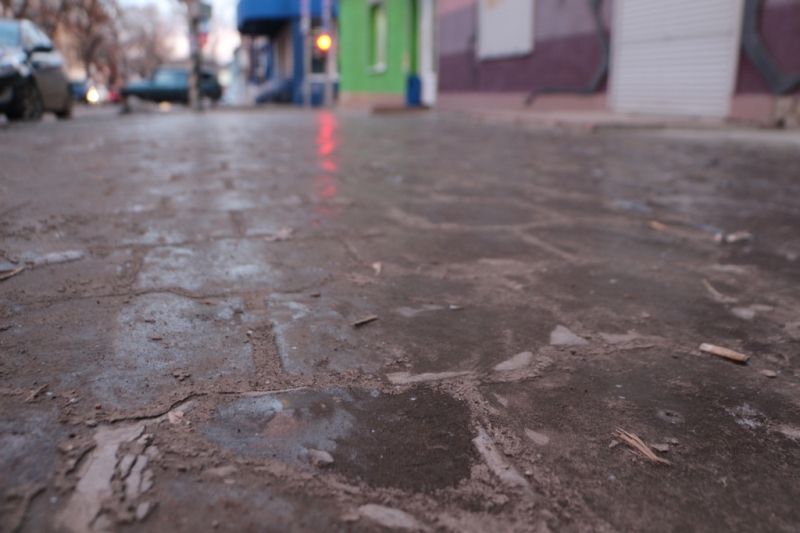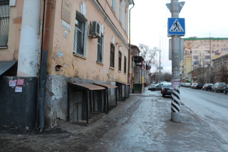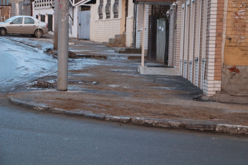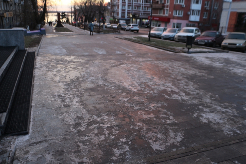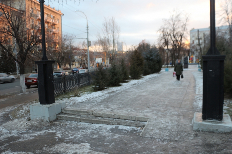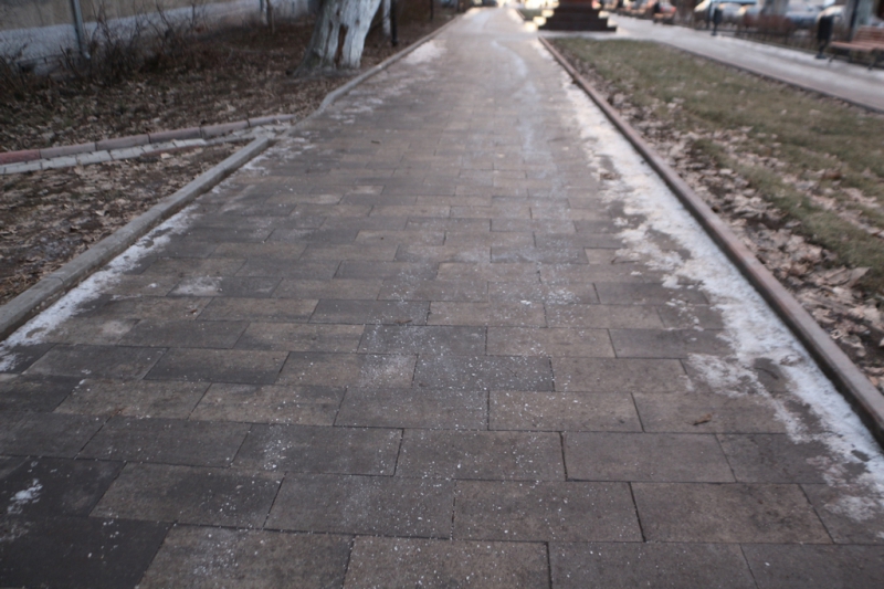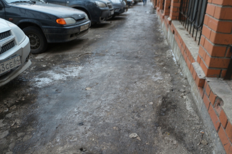 После новогодней оттепели в Саратов вернулись холода, а тротуары покрылись толстой коркой льда. Коммунальные службы областного центра, по всей видимости, старательно посыпали песком или соляной смесью только главные улицы. Плоды их трудов были замечены на пешеходной зоне, улицах Первомайской и Московской, а также на небольших участках улицы Чернышевского.