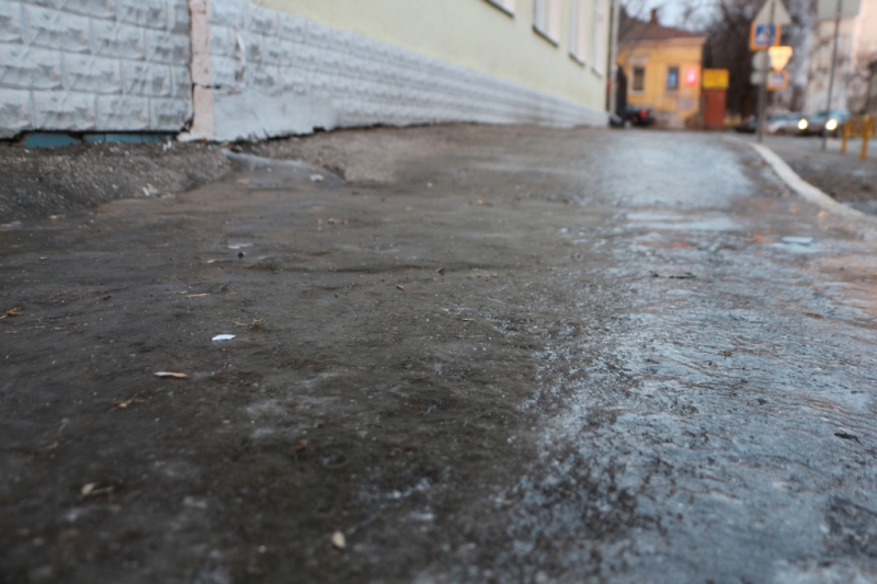 Однако, если свернуть с этих улиц на соседние, то можно сразу очутиться на льду. Например, на Мичурина (от Волжской до Московской) почти весь тротуар покрыт льдом, а песок рассыпали только рядом с магазином на углу Григорьева. Хуже всего обстоят дела на подходе к школе №9 на Соляной. Чтобы дойти до входа в здание, нужно преодолеть десятки метров по гололедице. Похожая ситуация на Октябрьской (от Московской до Челюскинцев), где горожане предпочитают идти по проезжей части. На этой территории расположены ОВД Октябрьского района и детский сад №68.