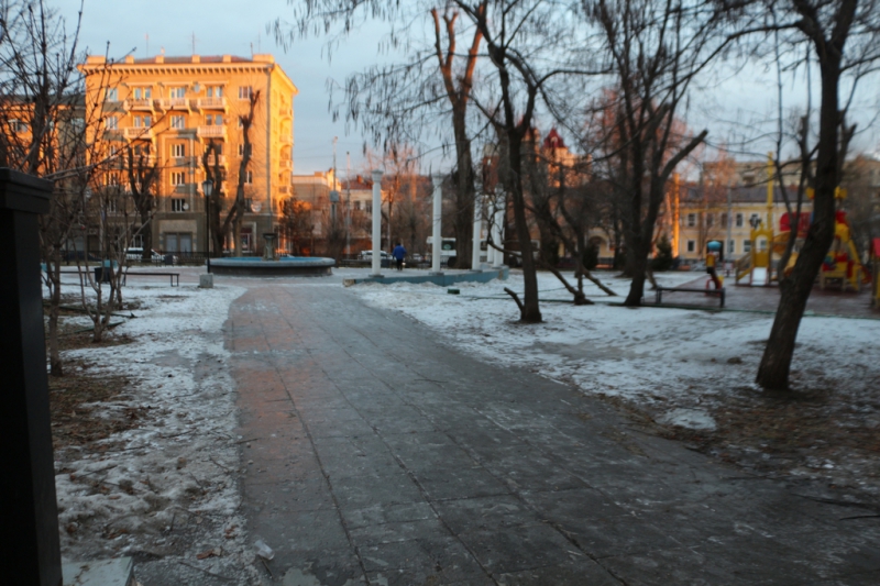 Кроме того, сквер Первой учительницы сейчас больше похож на ледовый каток. Прогуляться там и не упасть получится только у очень осторожных и ловких горожан. Вероятно, по этой причине там почти никого не было, а граждане обходили сквер по тротуару на Московской.