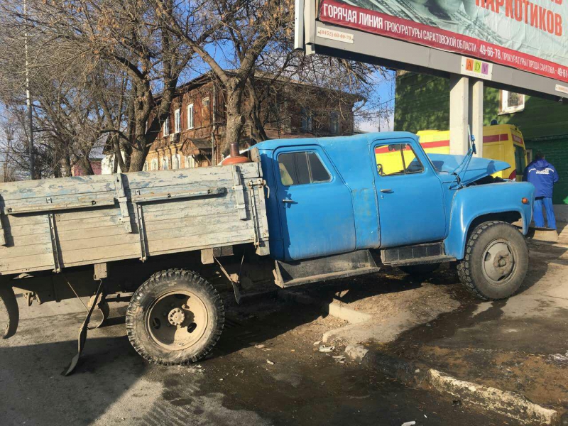 В центре Саратова грузовик после столкновения с «ВАЗом» сбил девушку и врезался в столб