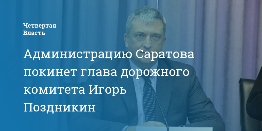 В Саратове пост председателя комитета дорожного хозяйства, благоустройства и транспорта покидает Игорь Поздникин. Об этом «Четвертой Власти» сообщили в пресс-службе администрации города.