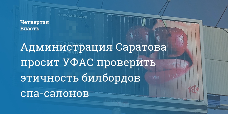 Администрация Саратова обратилась в региональное управление Федеральной антимонопольной службы с просьбой проверить на этичность билборды мужских спа-салонов. Об этом сообщает пресс-служба администрации города.