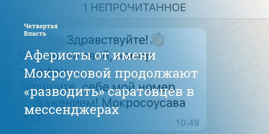 Аферисты от имени Мокроусовой продолжают «разводить» саратовцев в мессенджерах
