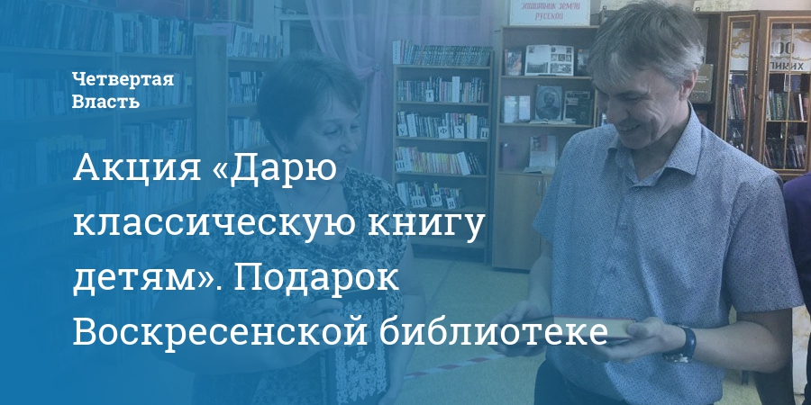 Председатель редакционного совета «Четвертой Власти» и депутат Саратовской областной думы Вадим Рогожин вручил Воскресенской районной библиотеке для детского отделения художественные книги в рамках двух акций: «Четвертой Власти» - «Дарю классическую книгу детям» и «Единой России» - «Русская классика – библиотекам».