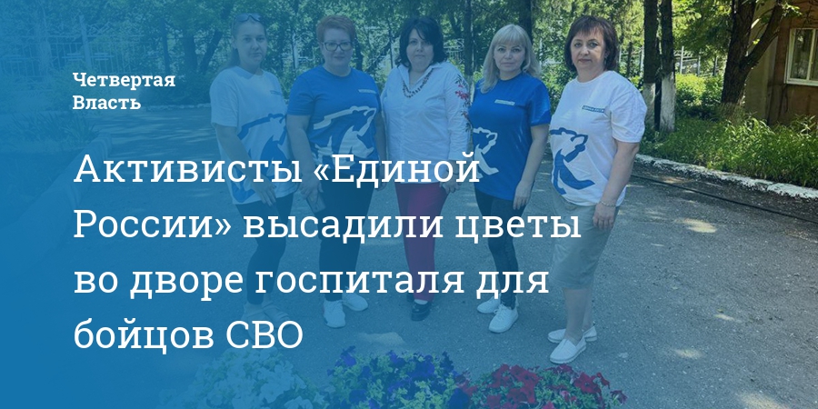 Активисты «Единой России» высадили цветы во дворе госпиталя для бойцов СВО