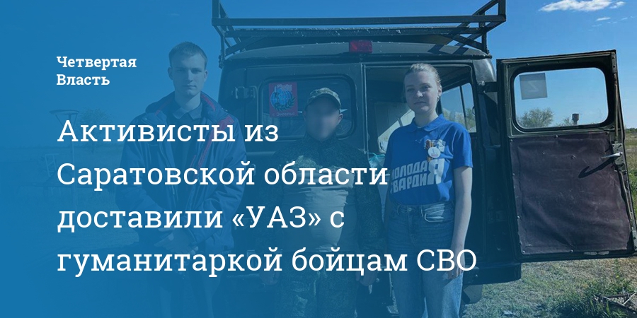 Доставку гуманитарки организовало реготделение «Молодой Гвардии» вместе с Энгельсским городским отделением всероссийской общественной организации ветеранов «Боевое Братство». Усилиями активистов был собран и доставлен автомобиль «УАЗ» с грузом, включающим медикаменты, маскировочные сети, продукты и запчасти для «буханки».