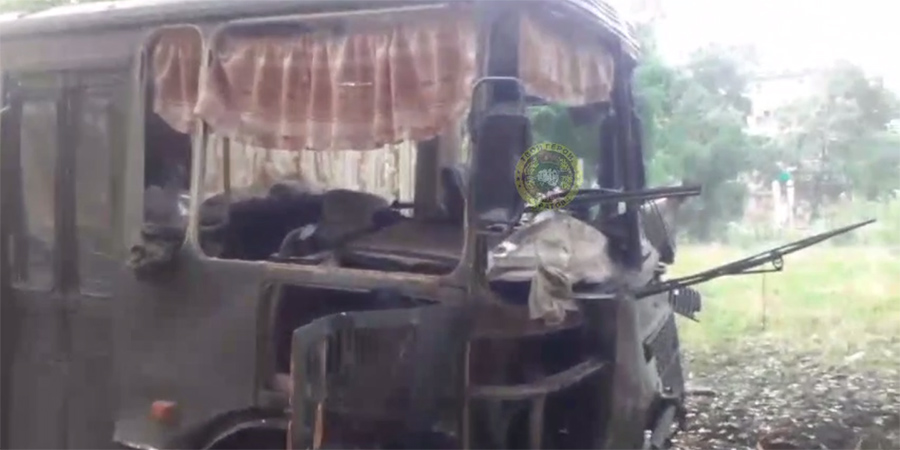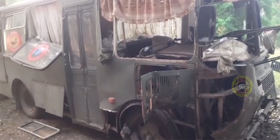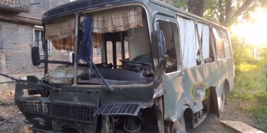 Судя по опубликованному видео, снаряд упал рядом с колесом транспорта. В результате взрыва автобус сильно повредился: выбиты стекла, деформированы части кузова. Вскоре саратовцы отправятся домой.