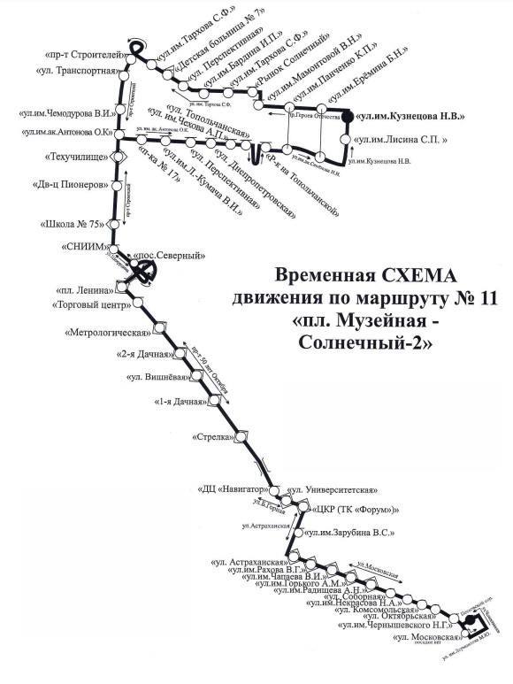 Теперь устанавливается кольцевой участок маршрута в сторону микрорайона Солнечный-2 по улицам: Академика Антонова, Топольчанской, Академика Семенова, Кузнецова, бульвар Героев Отечества, Топольчанская, Тархова.