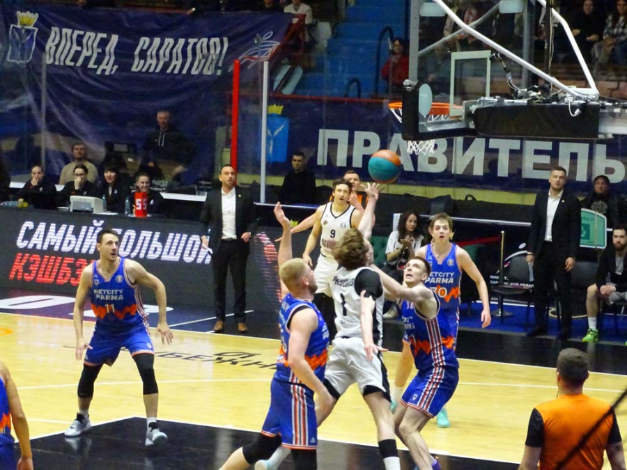 Начали матч хозяева площадки уверенно. После счета 11:13 они совершили рывок 16:2 и выиграли стартовый игровой отрезок с двузначной разницей. Во второй четверти команда легенд саратовского клуба Евгения и Захара Пашутиных, ныне возглавляющих штаб пермяков, подровняла игру, но к большому перерыву все равно уступала - 36:33.