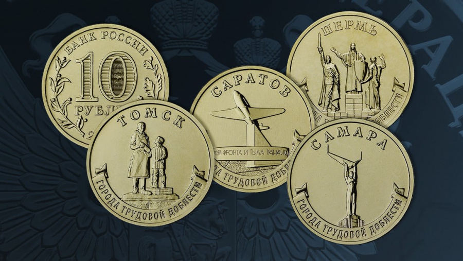 В описании монеты сказано, что у монеты из недрагоценного металла имеется рельефное изображение фрагмента монумента «Героям фронта и тыла» (расположен в Заводском районе). Кроме того, сверху есть надпись «Саратов», а внизу – «Города трудовой доблести». Аналогичные монеты еще выпустили в честь Перми, Самары и Томска. Тираж каждой монеты - 1 млн штук.