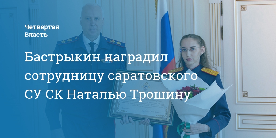 Председатель Следственного комитета РФ Александр Бастрыкин удостоил награды (почетной грамоты) старшего помощника руководителя следственного управления по Саратовской области Наталью Трошину. Церемония состоялась в ходе совещания по актуальным вопросам работы территориальных следственных подразделений по взаимодействию со СМИ.